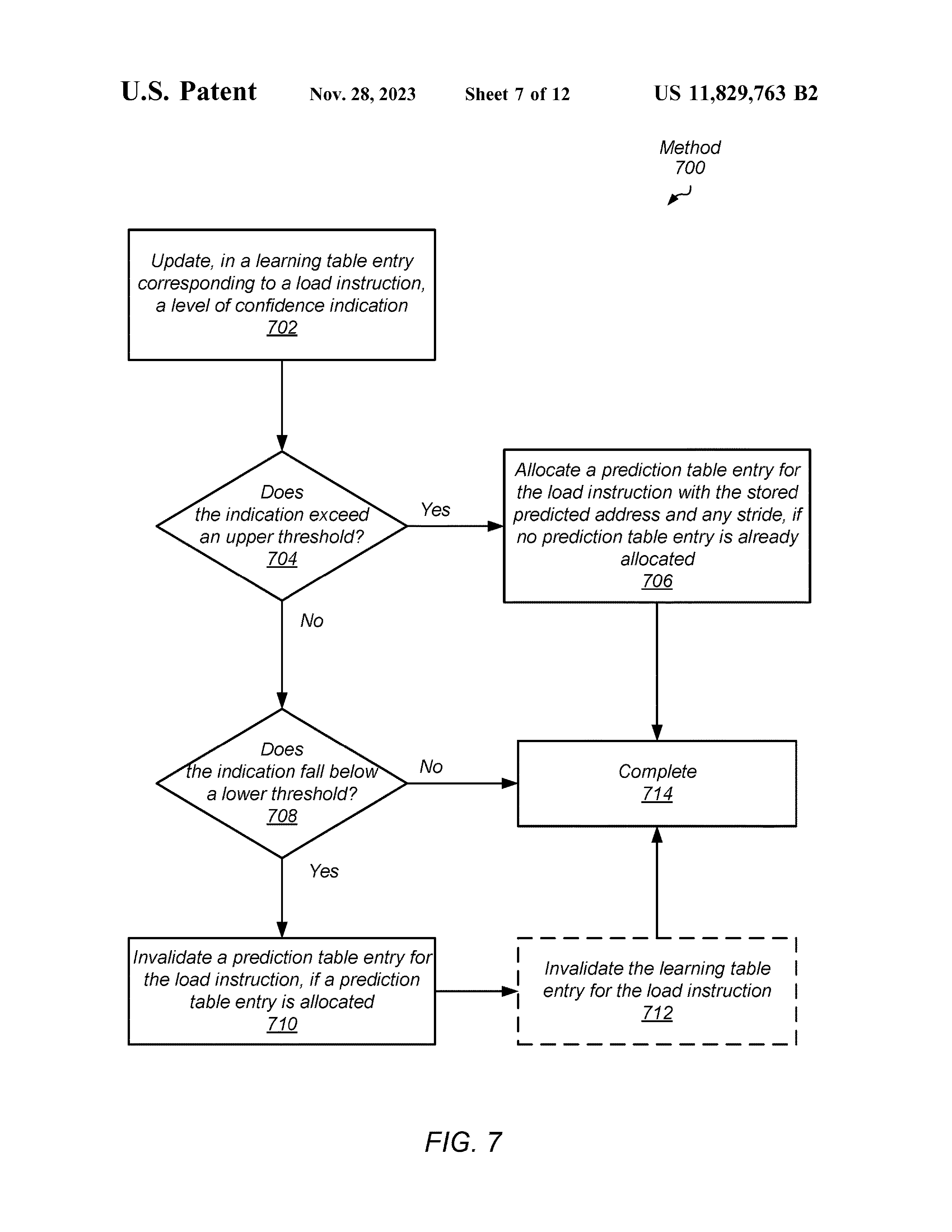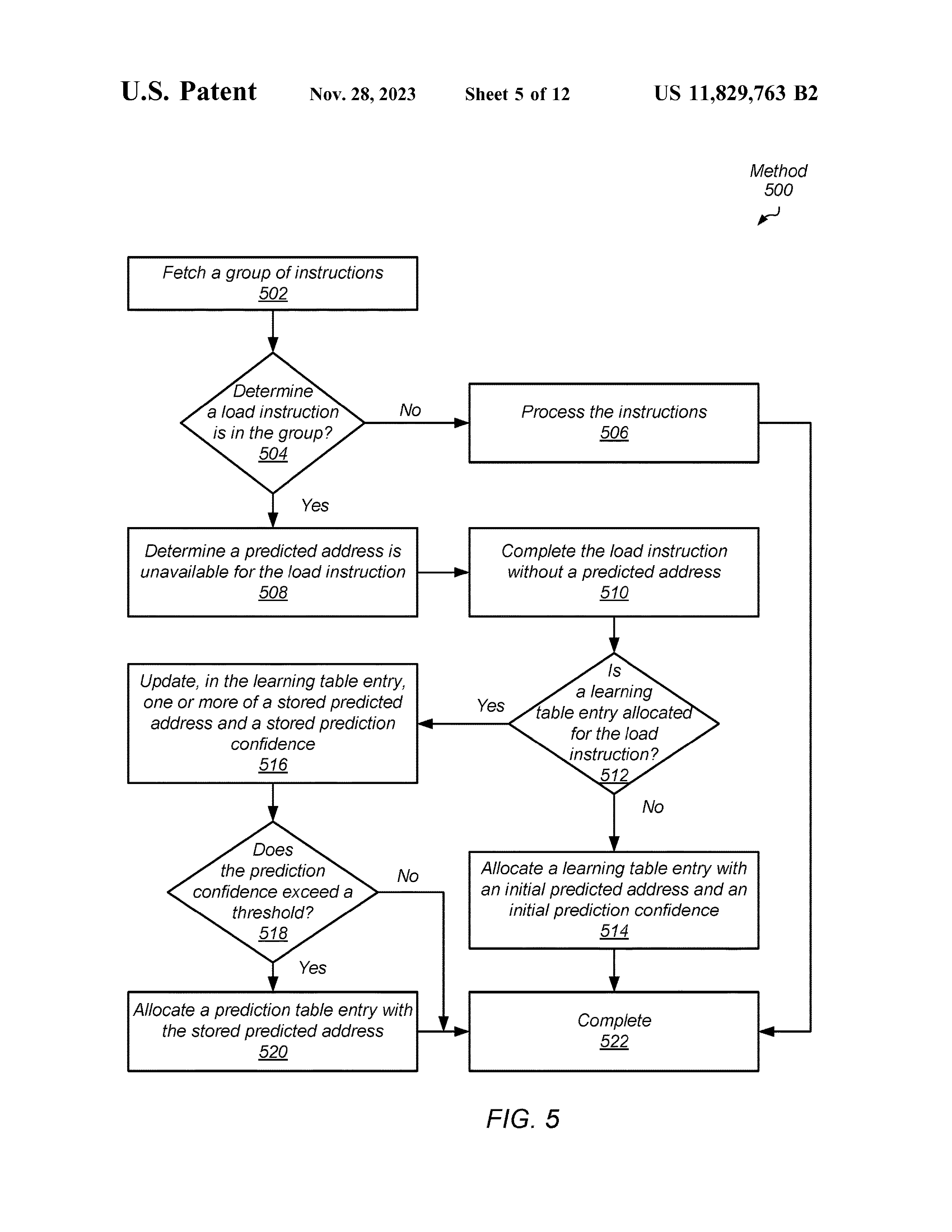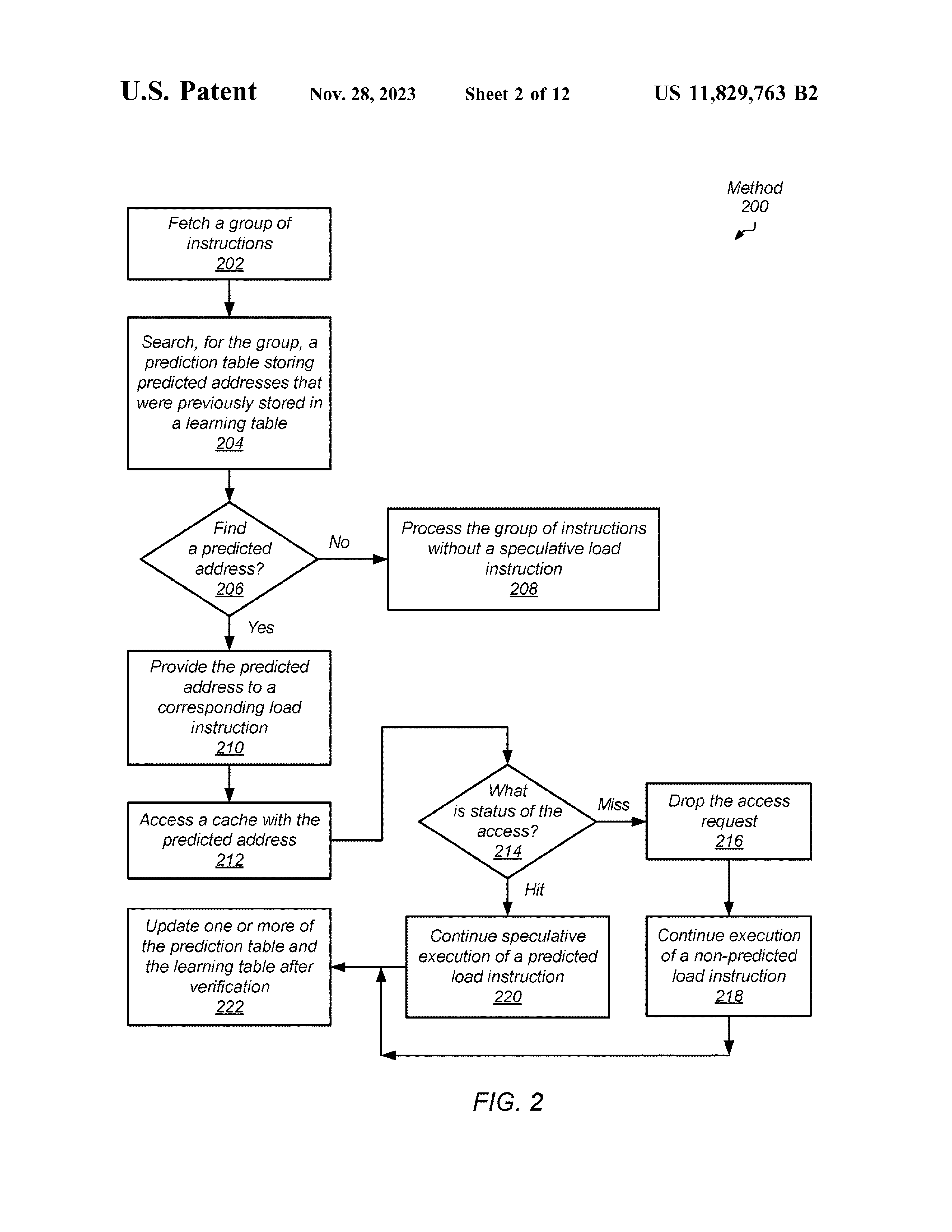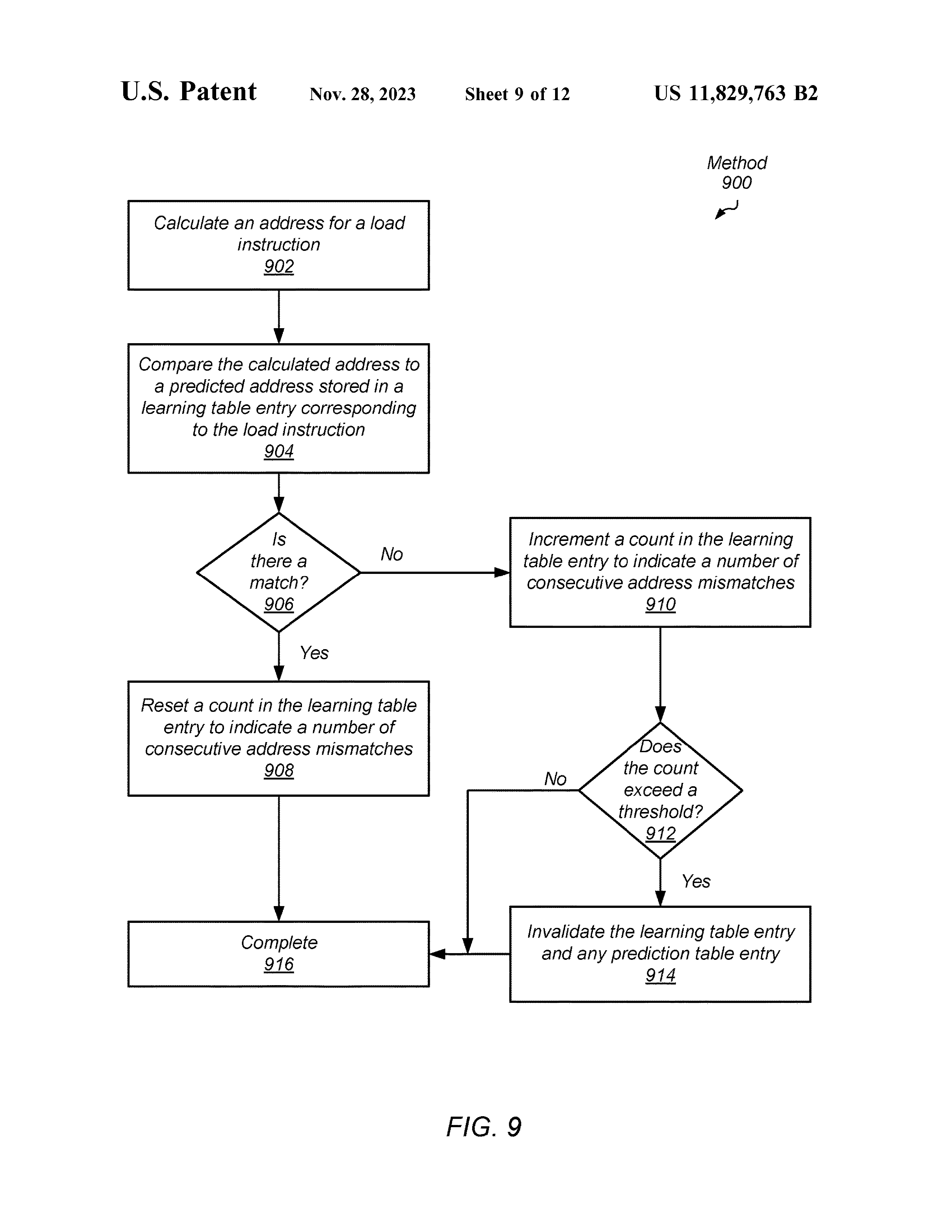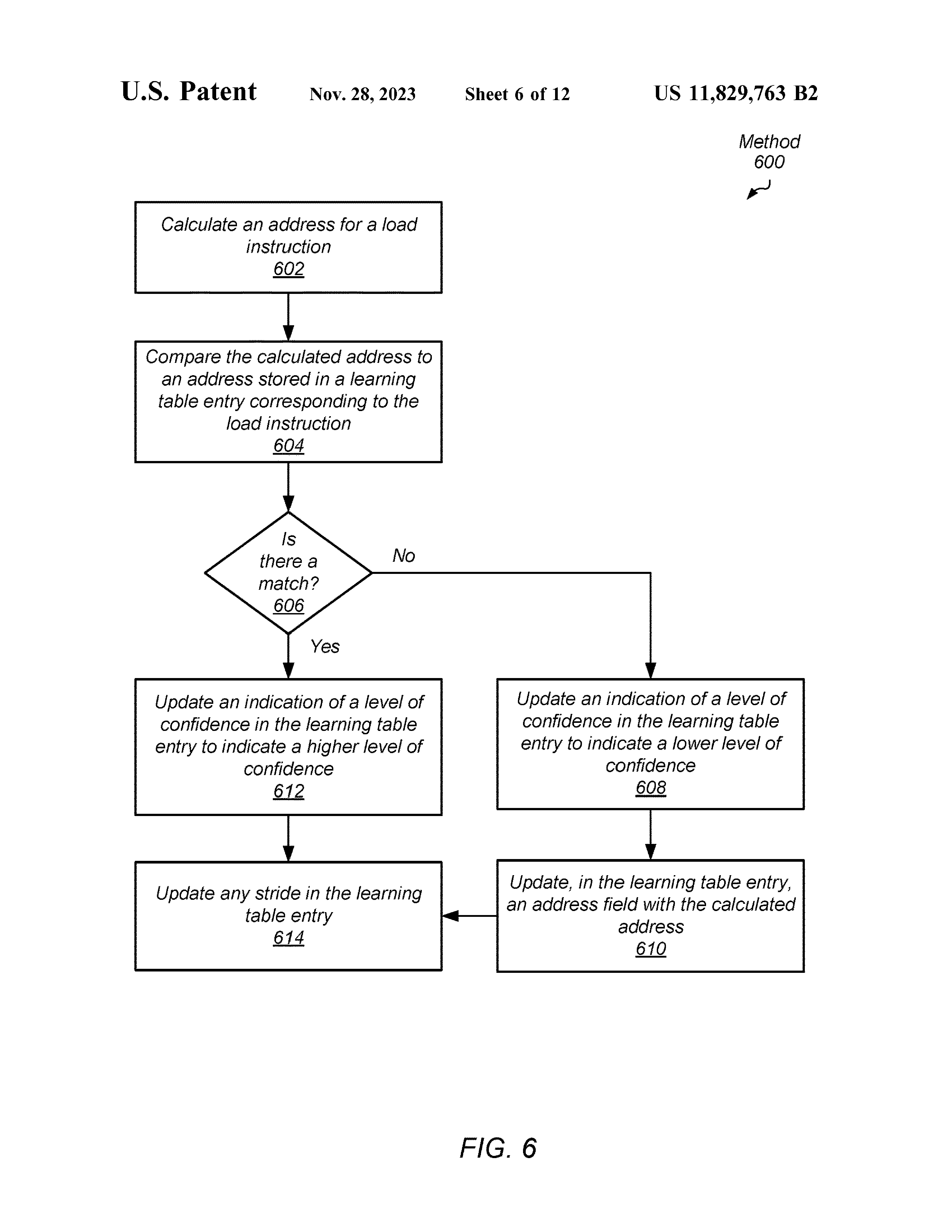 一种有效减少加载操作延迟的系统和方法。 在各种实施例中,处理器的逻辑在获取指令之后访问预测表。 对于预测表命中,逻辑使用从预测表中检索到的预测地址执行加载指令。 对于预测表未命中,当逻辑确定加载指令的地址并命中学习表时,且当学习表中存储的地址与确定的地址匹配时,逻辑更新置信度指示以指示更高的置信度。 当逻辑确定存储在学习表的给定表条目中的置信度指示达到阈值时,逻辑在预测表中分配存储在给定条目中的信息。 因此,在下一次查找预测表时,预测地址可用。